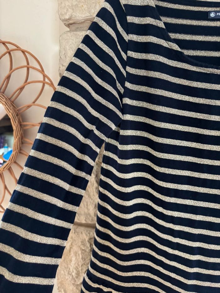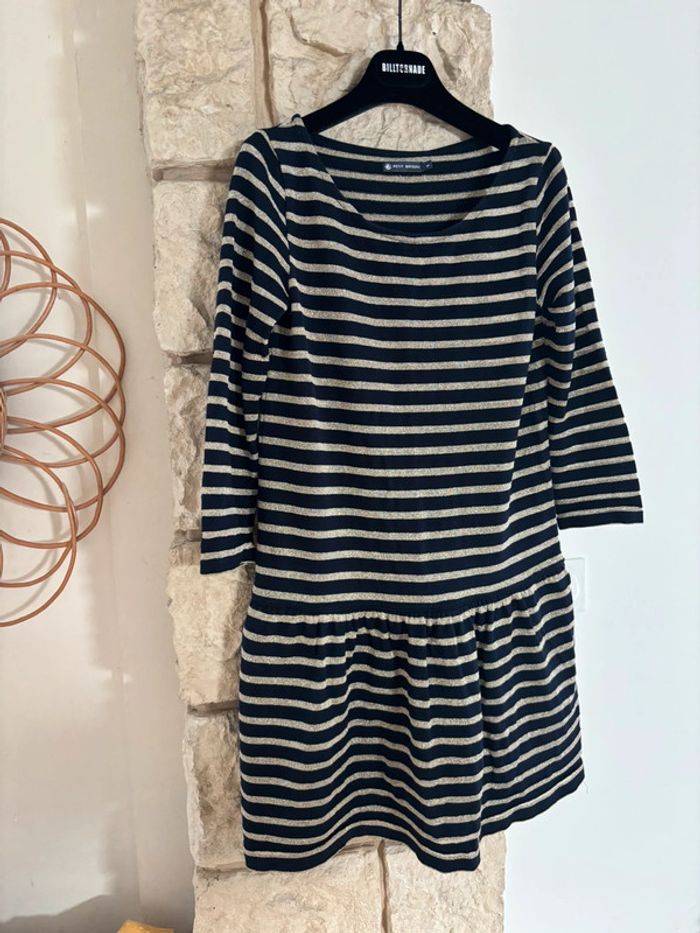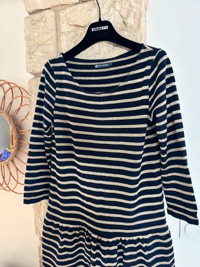 Robe marinière petit bateau Bleu marine liseret fil doré Doublé coton