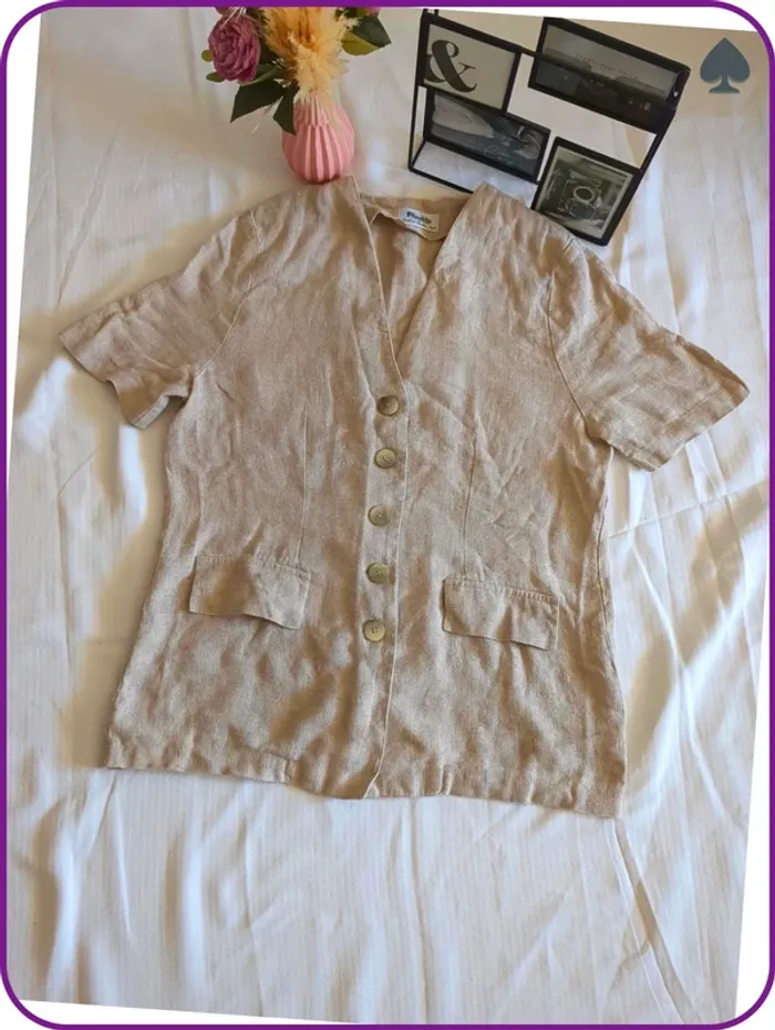 Blazer manche courte femme en très bon état, 100% lin très agréable. Taille 44. Couleur beige 🚚Envoi rapide #blazerenlinfemme #blazermanchecourtefemme #blazerenlin44 #blazermanchescourte44 #pimkie44femme #pimkielin