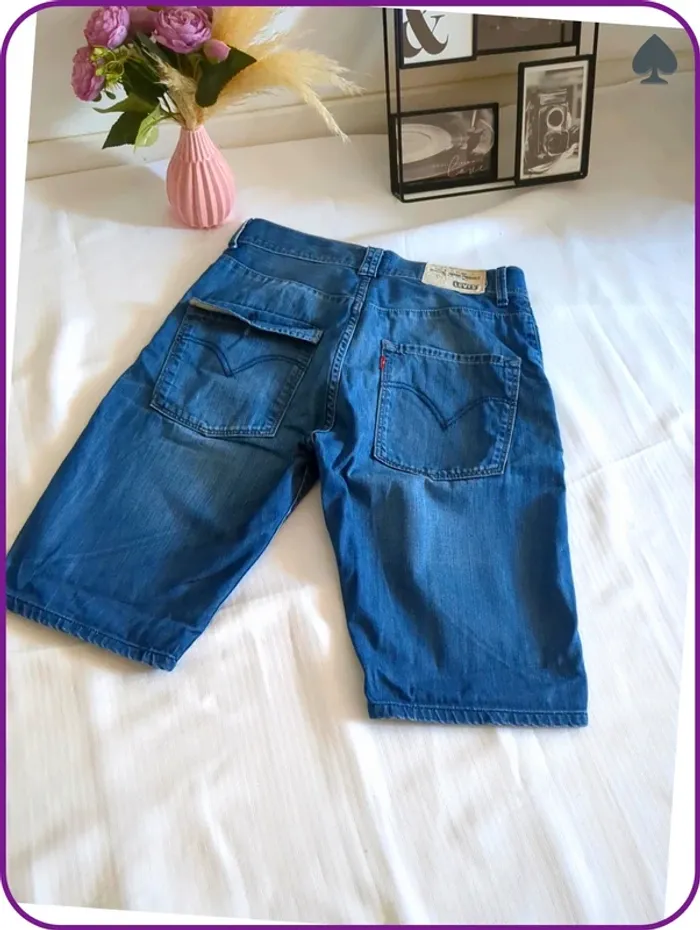 Short bermuda homme Levi's en bon état. Taille 40. 100%coton. Manque 1 bouton poche arrière ( voir photo) et petit accro ne gêne en rien ( voir photo ) 🚚Envoi rapide #shortlevis #levisvintage #vintagehomme #levisjeans #bermudalevis #jeansbleu