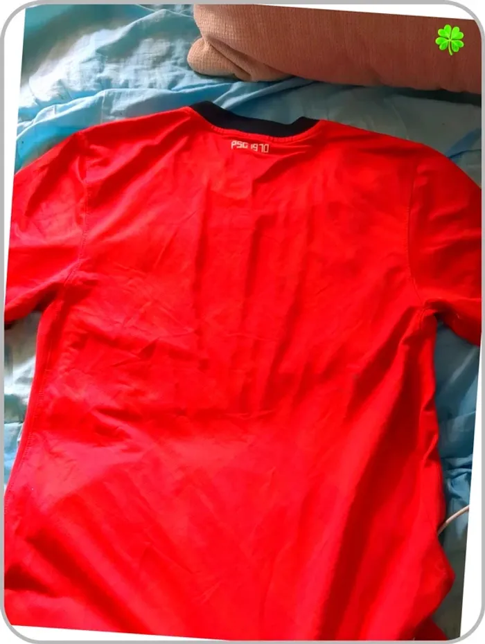 Maillot équipe du PSG pour les 40 ans. Couleur rouge, taille S bon état ( flocage avant, mini trou en bas sous étiquette, tâche arrière peu visible) voir photo... 🚚Envoi rapide #maillotdefootpsg #psgfootball #maillotpsg40ans #psg40ans #maillotdefootpsgvintage #psg #foot #maillotpsg2010 #footvintagemaillot