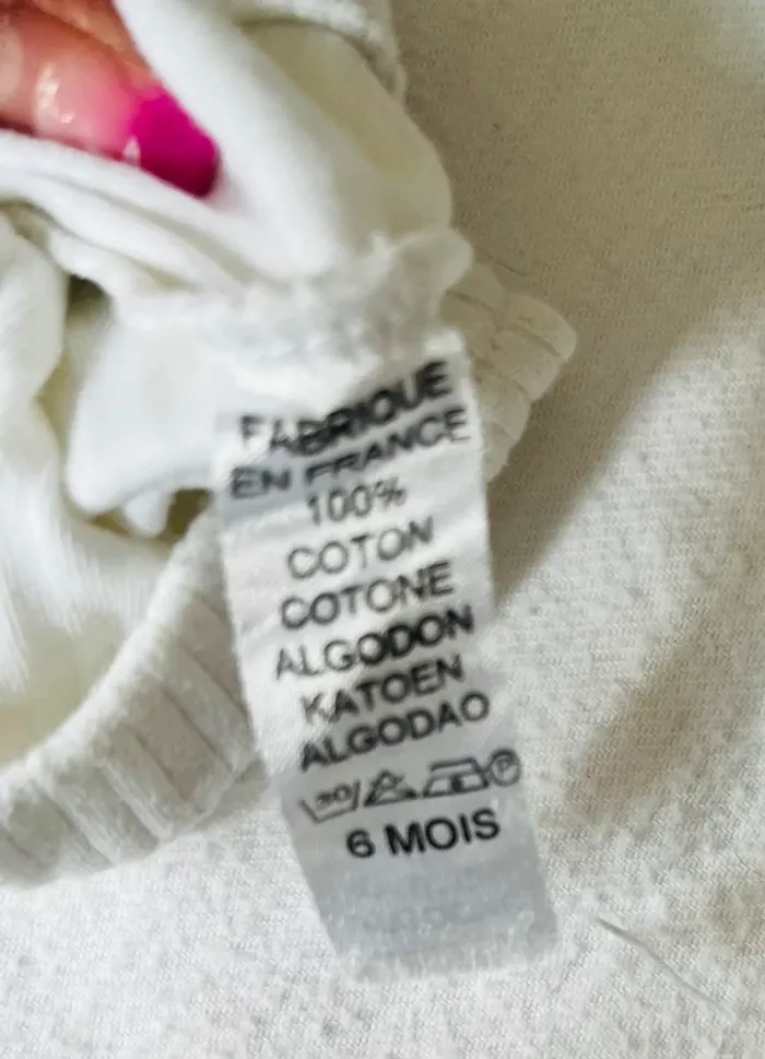 Short fabrication française 100% coton Blanc Taille 6 mois Tbe