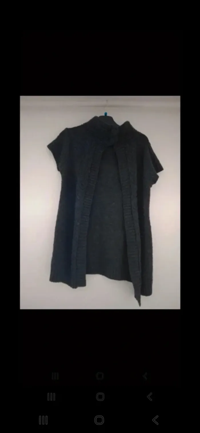 Joli gilet sans manches en maille épaisse gris foncé de la marque Kiabi, taille 38. Col montant avec deux boutons décoratifs. Parfait pour la mi-saison ou à superposer sur un sous-pull ou une chemise. En très bon état. #fashionmode5908_T38 #kiabi #gilet #sansmanches #maille #gris #taille38 #modefemme #automne #hiver
