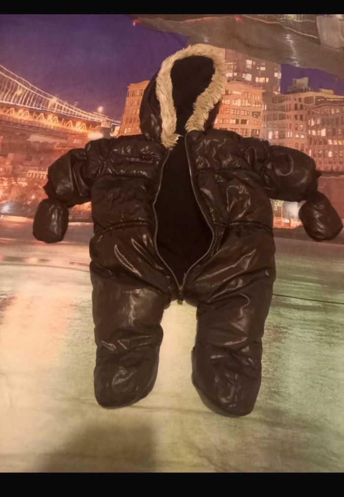 Combi pilote avec gants gris foncé brillant bon état peu porté