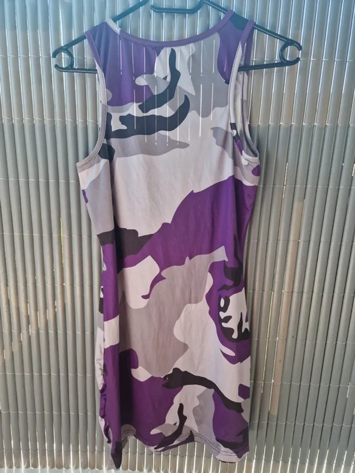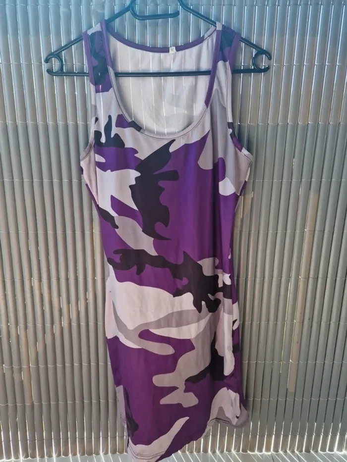 #fashionlilou74_femmeM Robe courte, couleur militaire violet, tendance, dos nageur, Taille M, neuf sans etiquette et jamais portée,