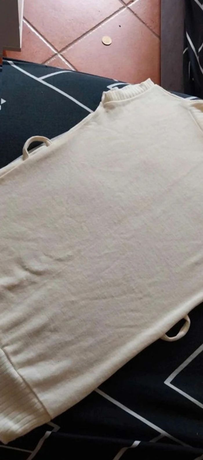 Pull long. Taille unique. Couleur beige. Taille unique. Epaule 44cm. Longueur 68cm #femmeadelicia44