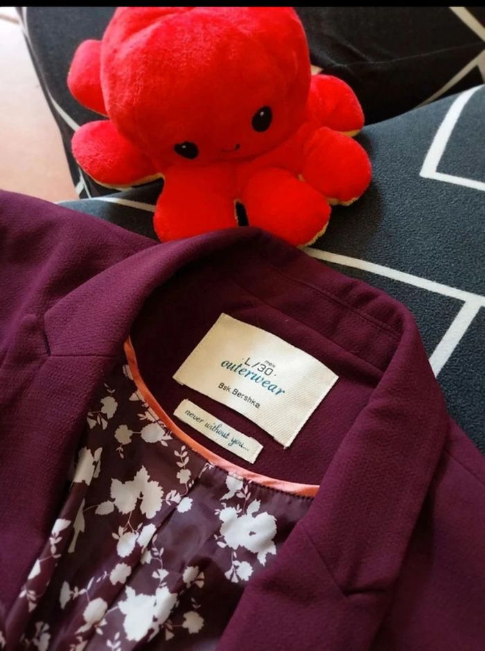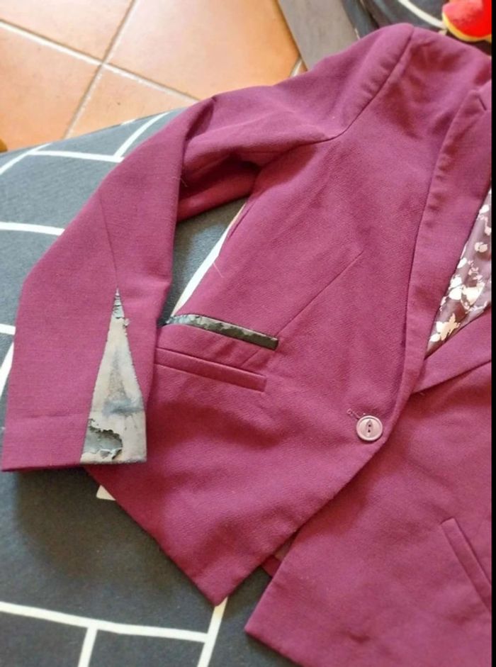Veste TL de tailleur femme couleur prune. Marque Bershka. Le faux cuir des manches et du dessus de poche sont abimé voir les photos. Avec Poche intérieur #femmeadelicia44