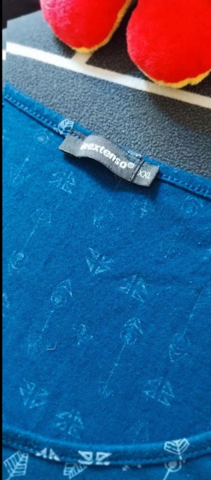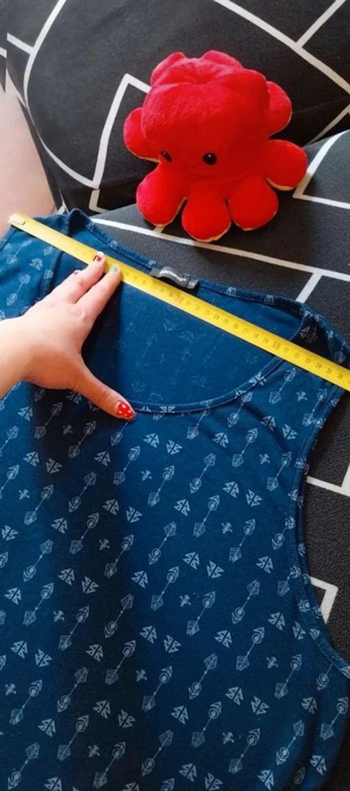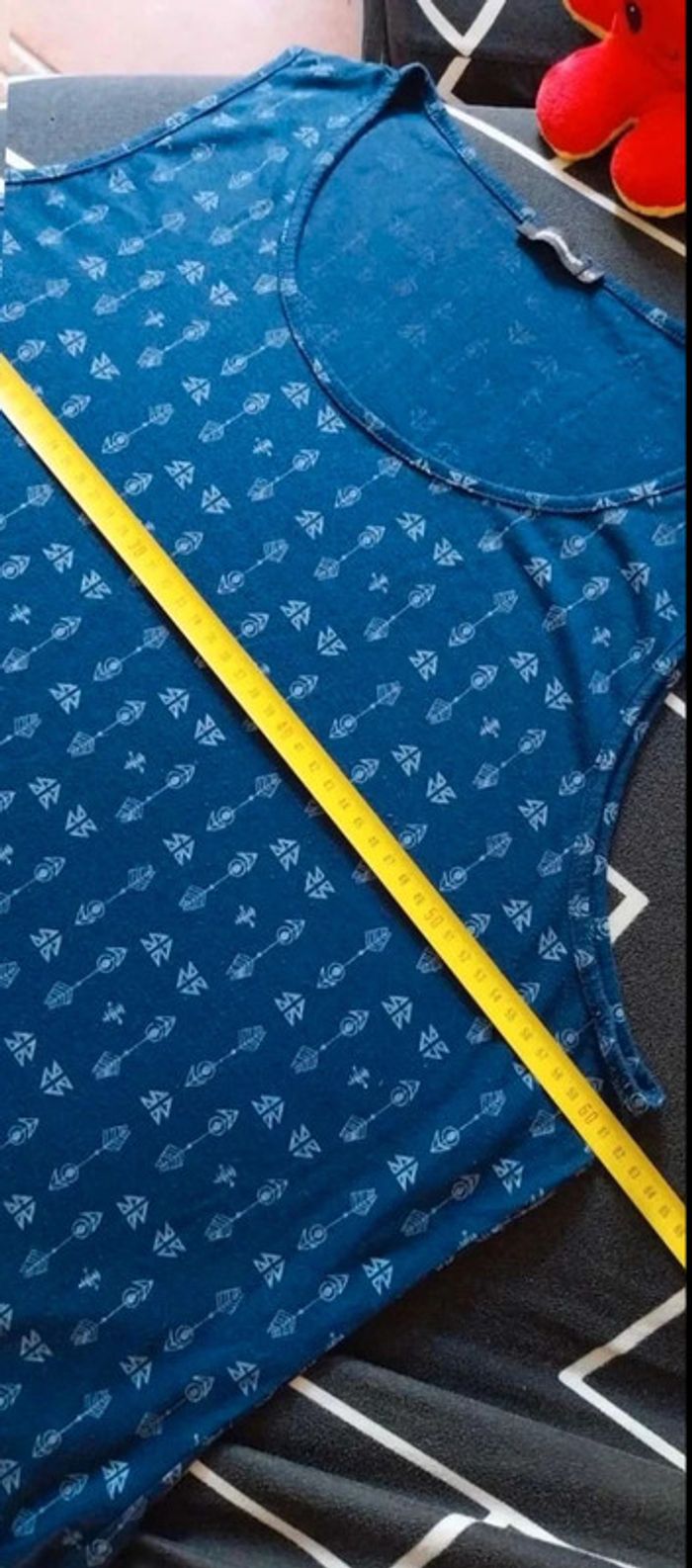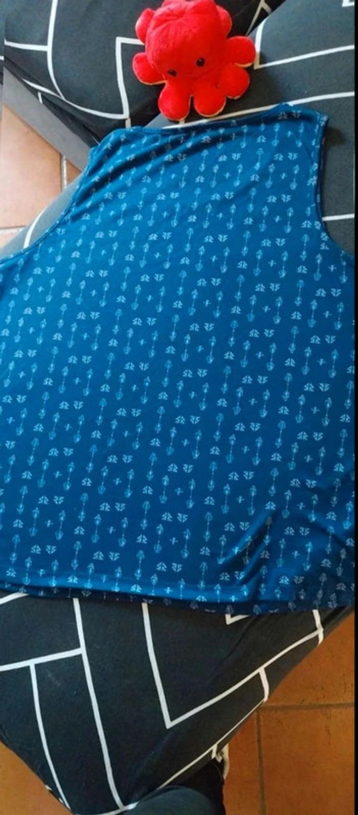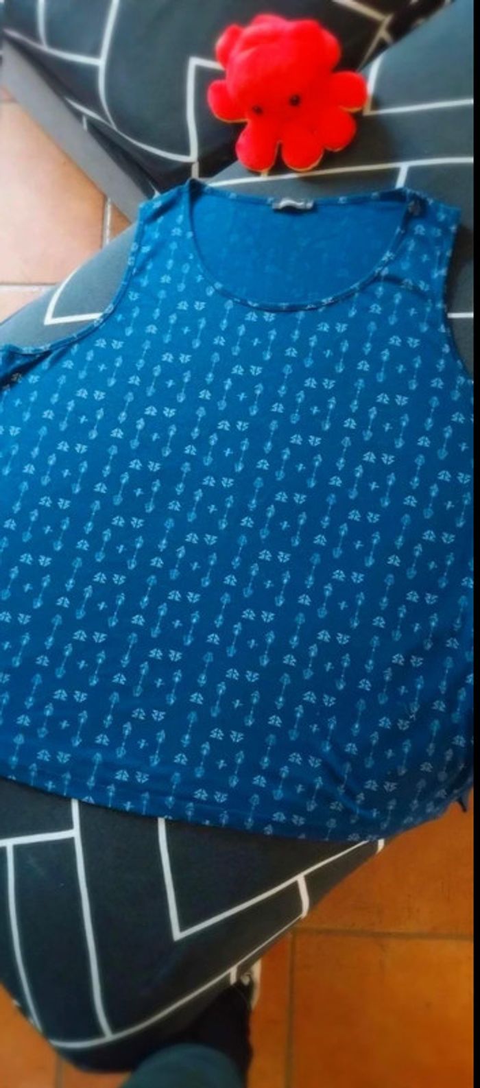 Haut debardeur bleu à motif blanc. Taille XXL.Marque In extenso. Attention bouloche un petit peu. Longueur 72cm. Epaules 38cm. Aisselle 63cm #femmeadelicia44