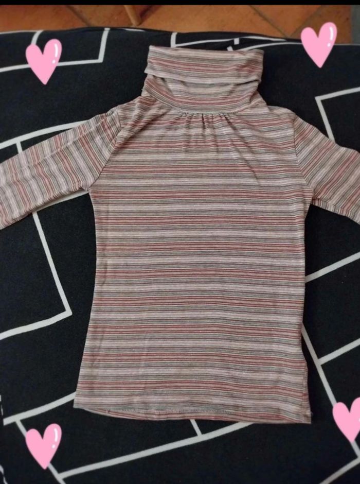 Col roulé à rayures colorée. Manches longues. Taille 8ans. Marque okaibi. Peu porté. Voir mesures en photos #8ansadelicia44