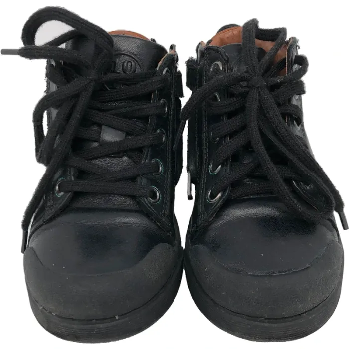Excellent état, peu portés ! Marque : 10IS Coloris : Noir Pointure : 24 Saison : Automne / Hiver Matière : semelle intérieure : Cuir sans chrome, semelle extérieure : Caoutchouc Genre : Mixte DÉTAILS Uni, Cuir, Baskets montantes, Lacets, Zip sur le côté L'arrière de la chaussure assure un bon maintien du pied, Semelle antidérapante