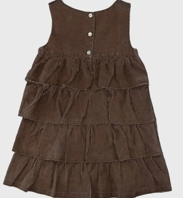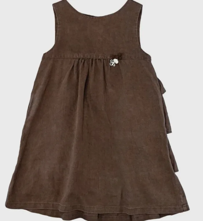 Comme neuve ! 👍 Coloris : Marron Taille : 4 ans Saison : Printemps / Été Genre : Fille DÉTAILS Ouverture boutonnée au dos boutons de nacre, Sans manches Sans manches, Doublée, Volume évasé, Découpe poitrine et fronces pour une touche élégante, Finement accessoirisée d'un nœud à la poitrine COMPOSITION Tissu principal : 100% Lin ; Doublure : 100% Coton