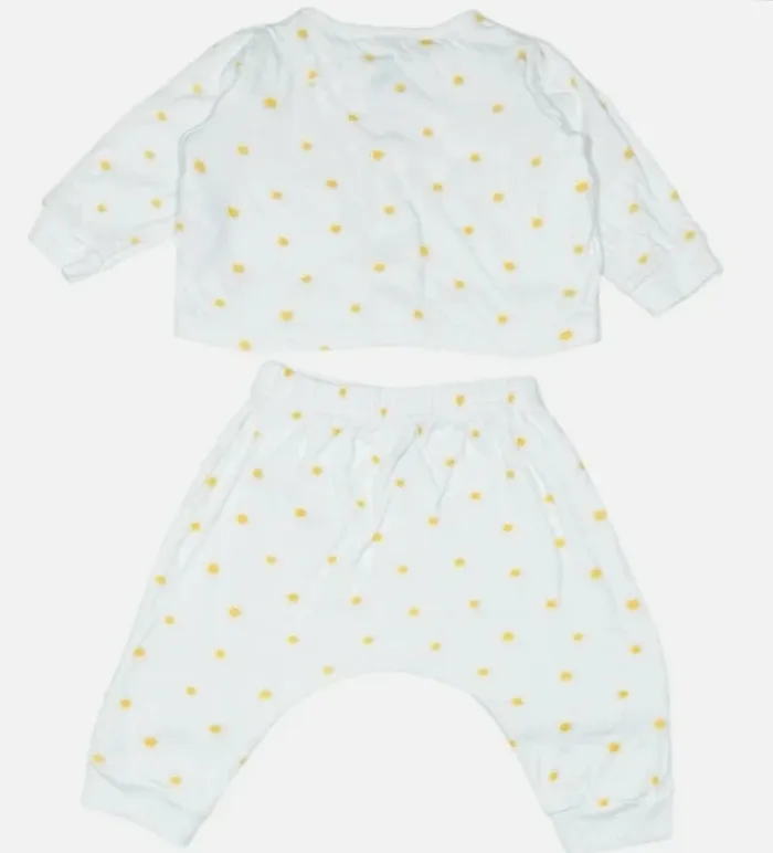 Excellent état comme neuf Coloris : Blanc, Jaune Taille : 6 mois Saison : Toutes saisons Genre : Mixte DÉTAILS Motif soleil Pyjama 2 pièces