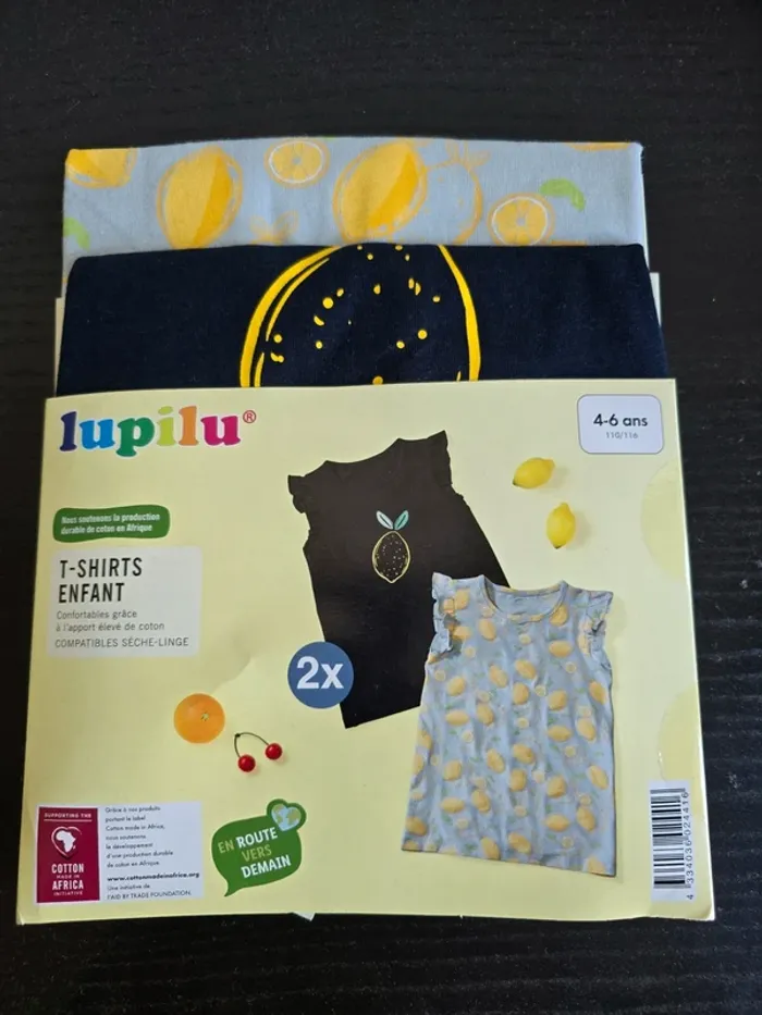 lot de 2 Tee-shirt noire et gris Lupilu
