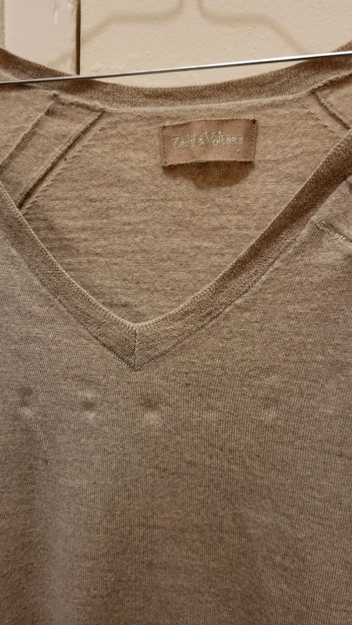 Haut pull col V beige - photo numéro 3