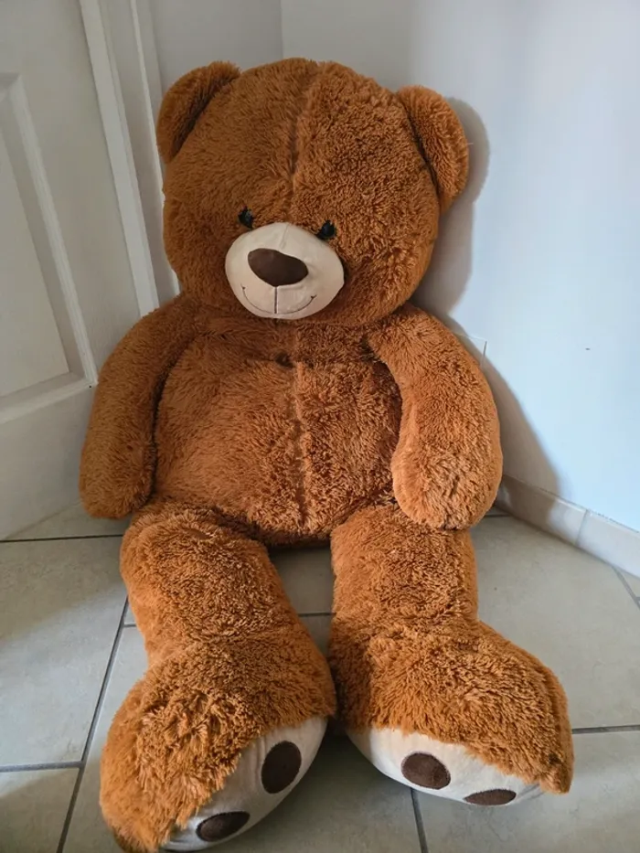 Voici une magnifique peluche ours en peluche de grande taille, mesurant 135 cm de hauteur. Cet ours en peluche brun est très doux et moelleux, parfait pour les câlins et les moments de détente. Il serait un compagnon idéal pour les enfants ou même les adultes qui cherchent un ami en peluche réconfortant. Cette peluche est dans un excellent état, n'ayant été que peu utilisée. Elle ferait un cadeau parfait pour un anniversaire, Noël ou simplement pour se faire plaisir. N'hésitez pas à me contacter si vous avez d'autres questions ! - Peluche ours en peluche - Couleur : brun - Taille : 135 cm - Excellent état - Idéal pour les enfants et les adultes