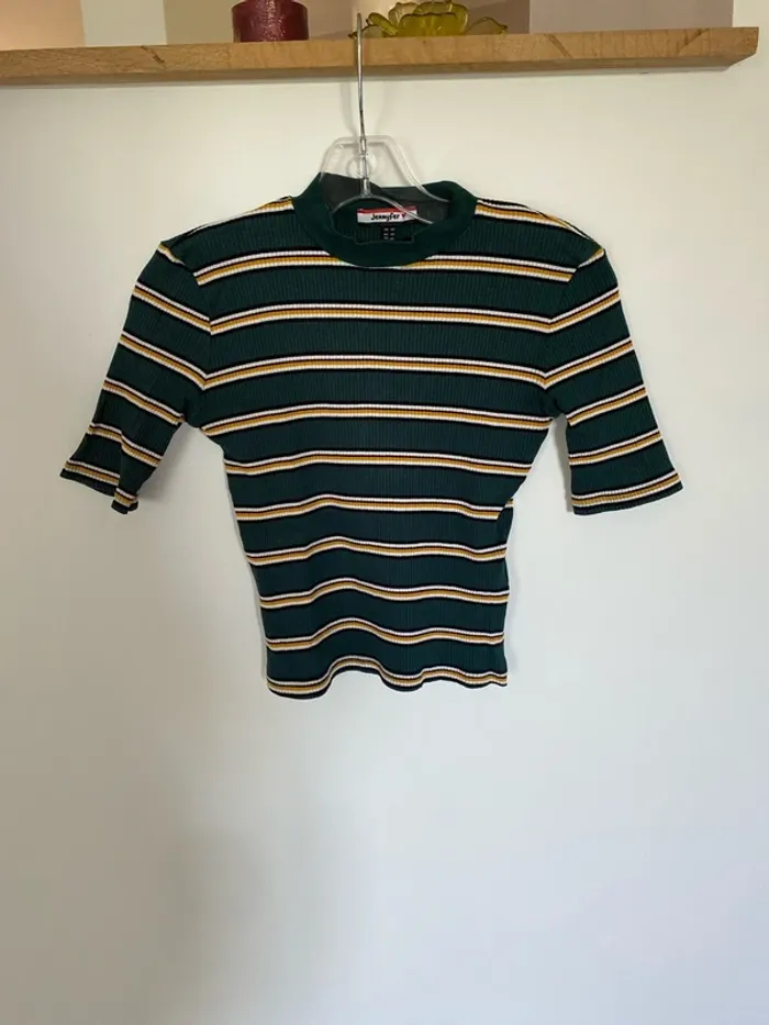 T-shirt vert rayé côtelé Jennyfer - photo numéro 1