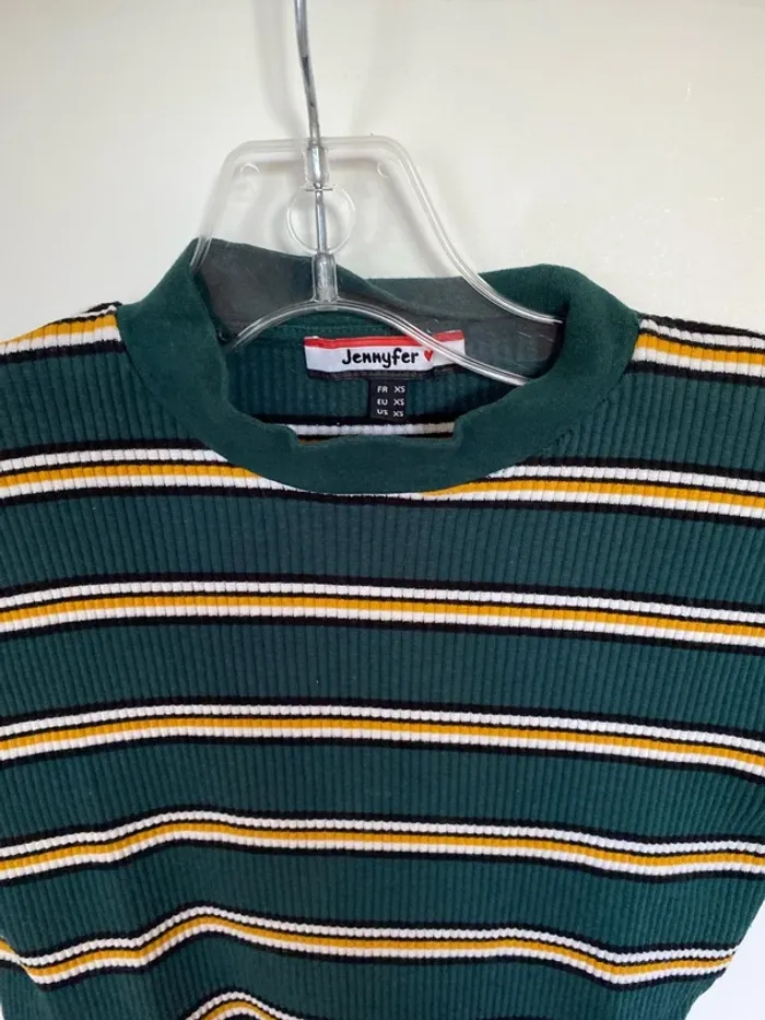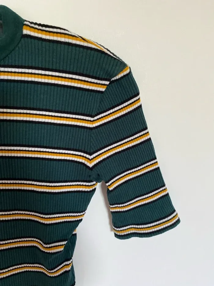 T-shirt vert rayé côtelé Jennyfer - photo numéro 5