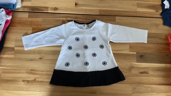 Taille 12 mois Parfait état #29891sandra_bbfille12mois #tunique #orchestrafille #12moisfille #noiretblanc #brodreriefleurs