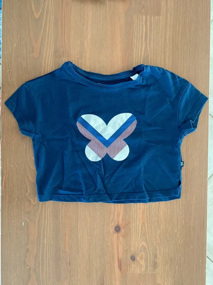 Top court OKAIDI bleu flocage papillon - photo numéro 2