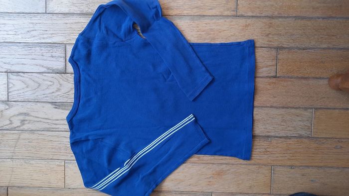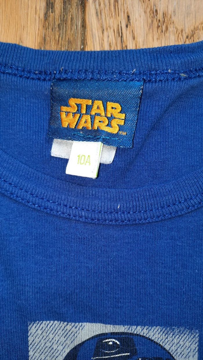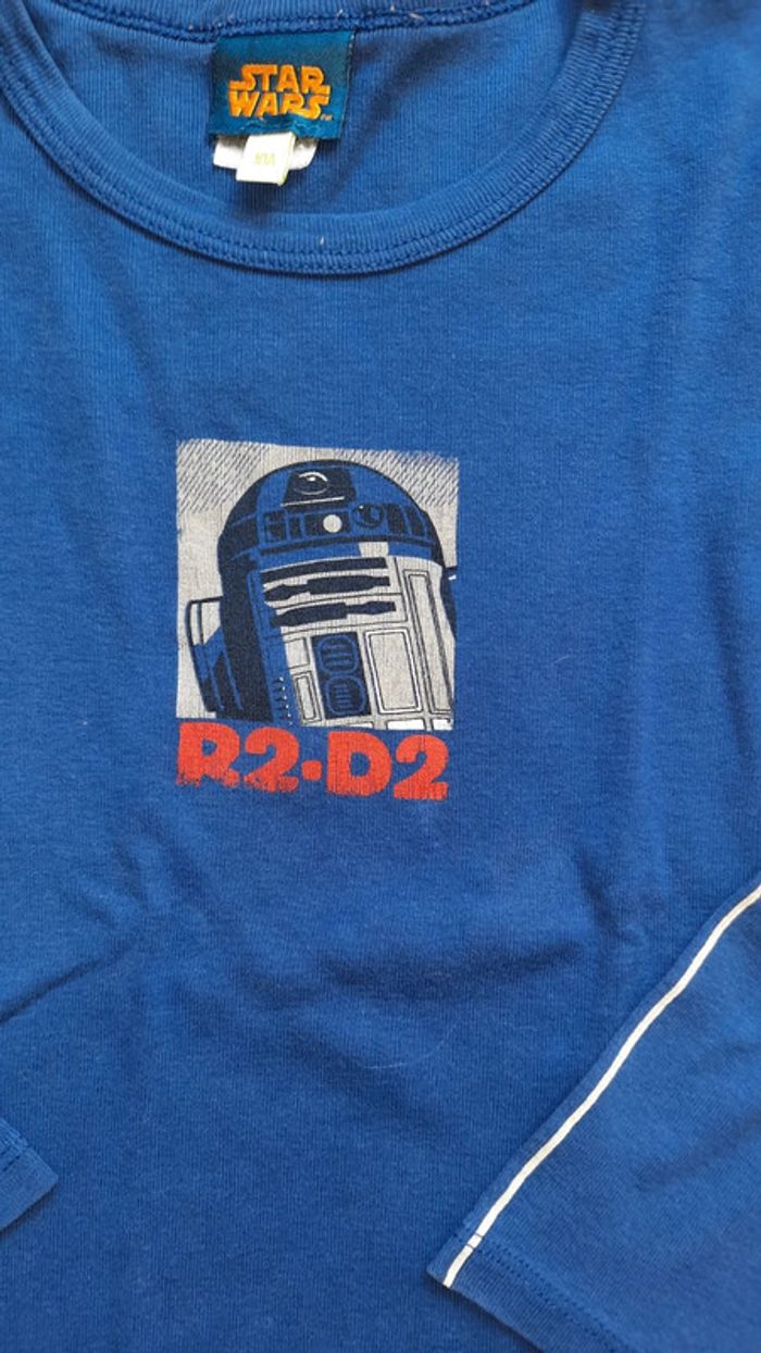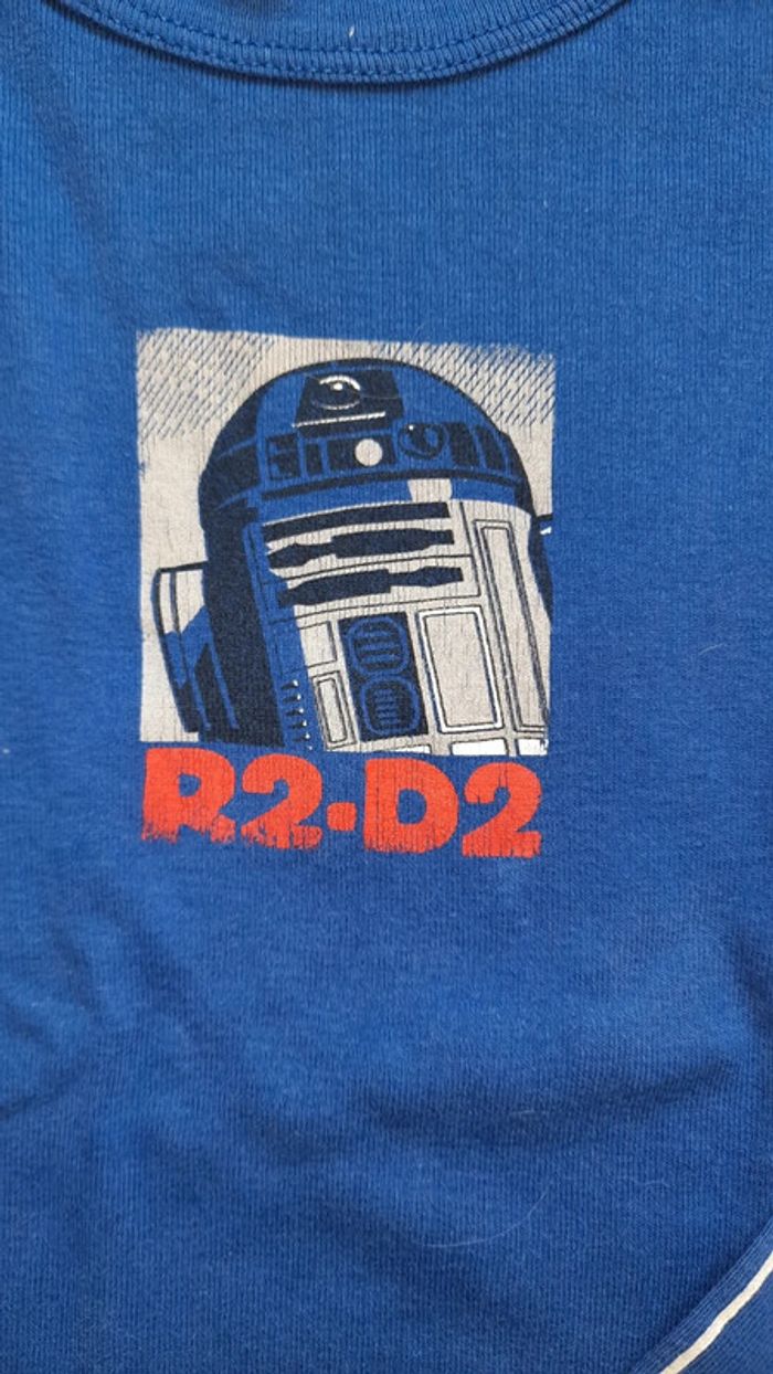 Maillot de corps Taille 10 ans Ml de bleu avec des bandes blanches sur des manches Theme star wars avec Sérigraphie R2d2 Sérigraphie craquelé #Valandre10ans