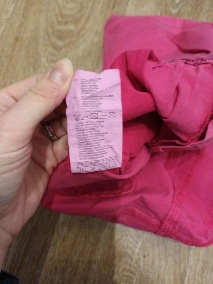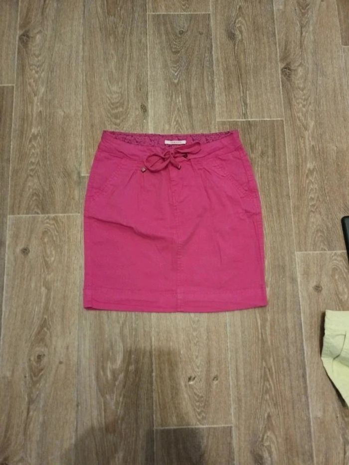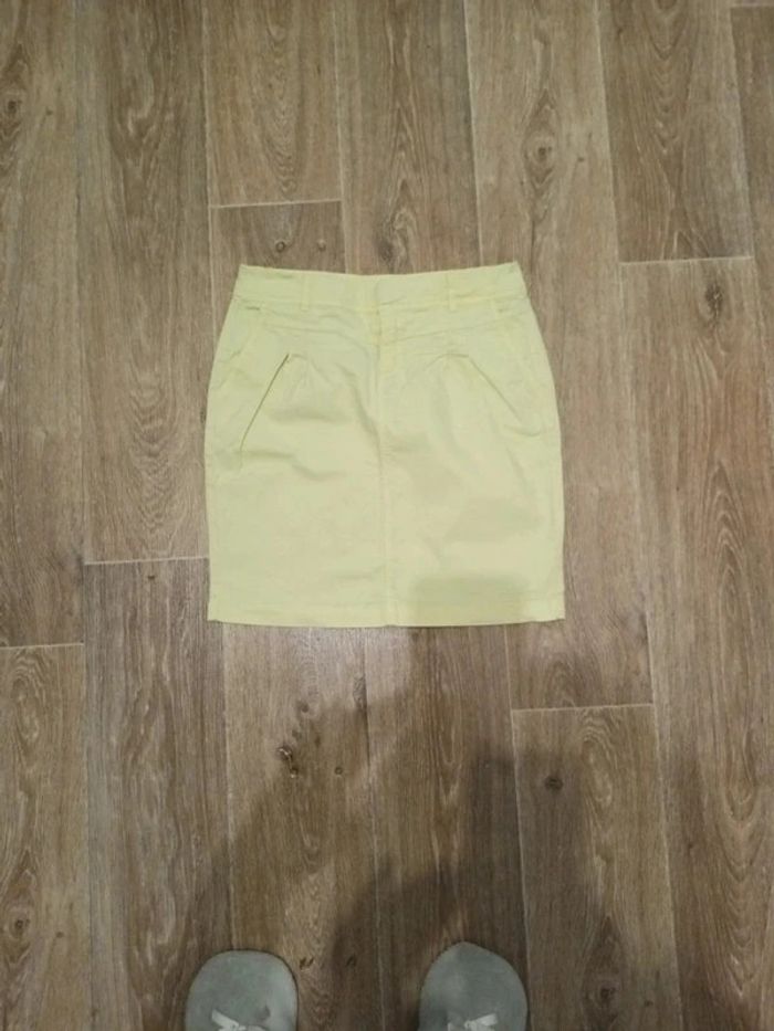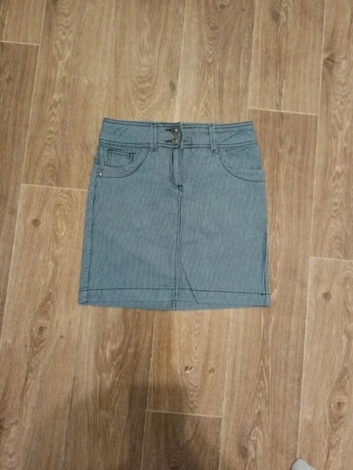 Jupe femme jaune Quelques petites tâches à l'arrière peu visibles (voir photos) Jupe femme rose fuschia Quelques mini tâches (voir photo) Un peu usé sur le bas Jupe femme rayée Bleue et blanche Jupe femme Taille 34 Coutures au bas de la jupe un peu noircie (voir photo)