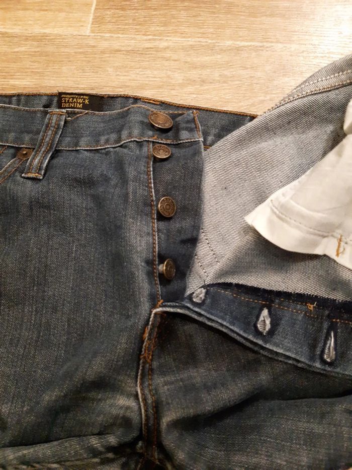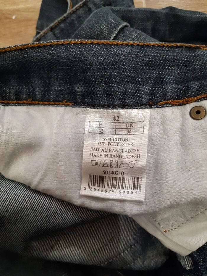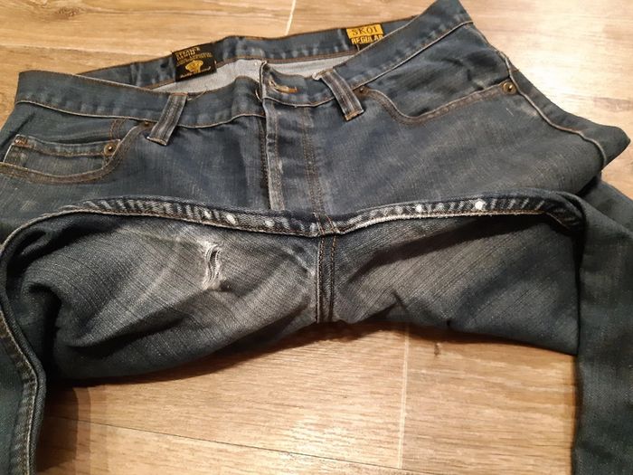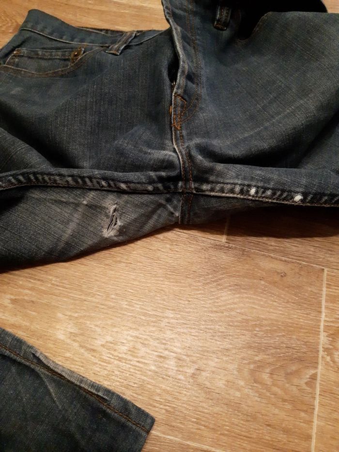 Jeans homme Bleu Déchiré en bas et entre les cuisses Coupe regular Taille 42