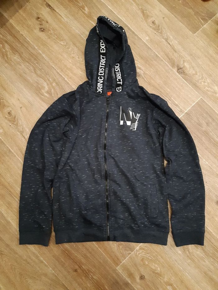 Sweat à capuche fille Gris chiné + inscription Jamais porté