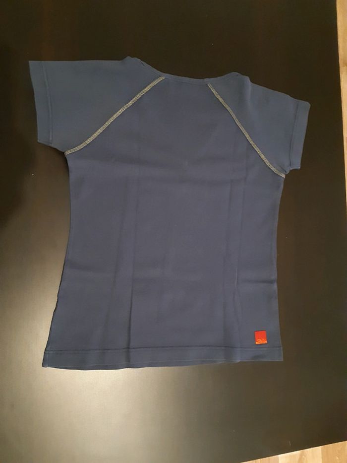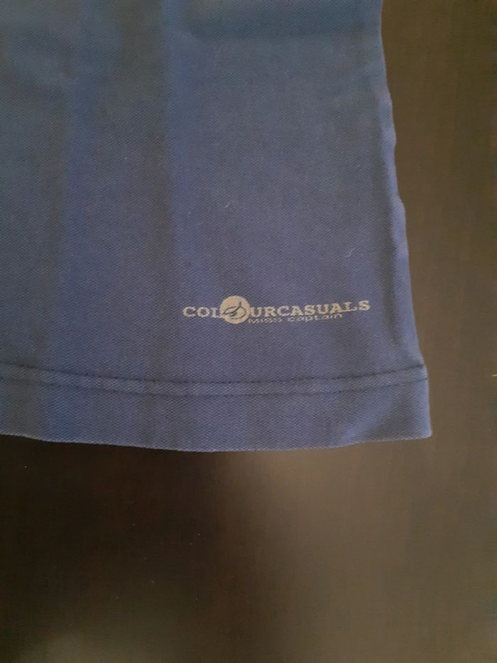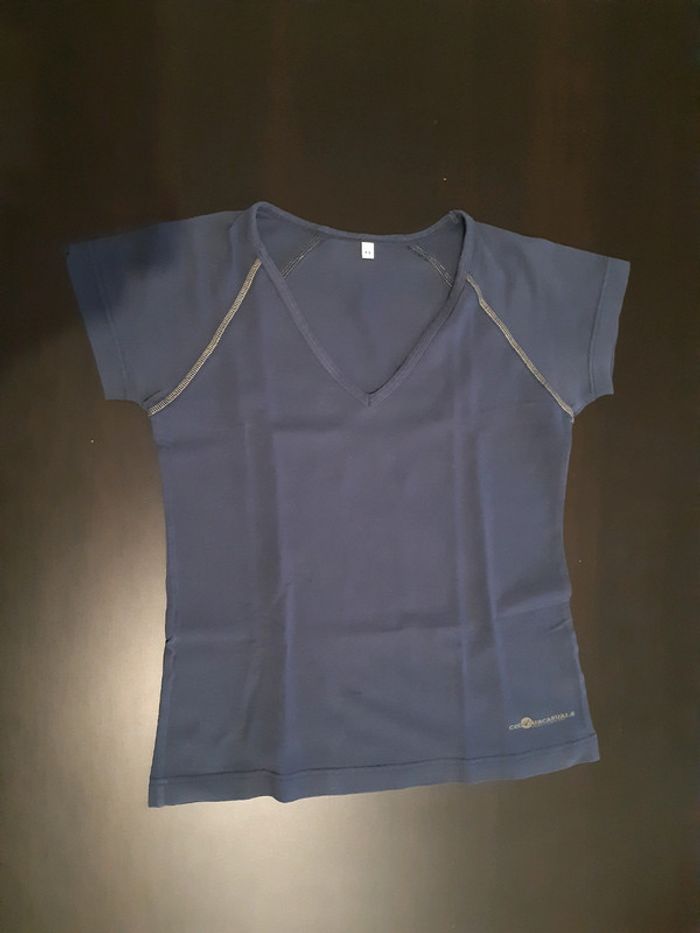 T-shirt femme bleu marine liseré jaune Col élimé Taille 1 Marque colour casual miss captain