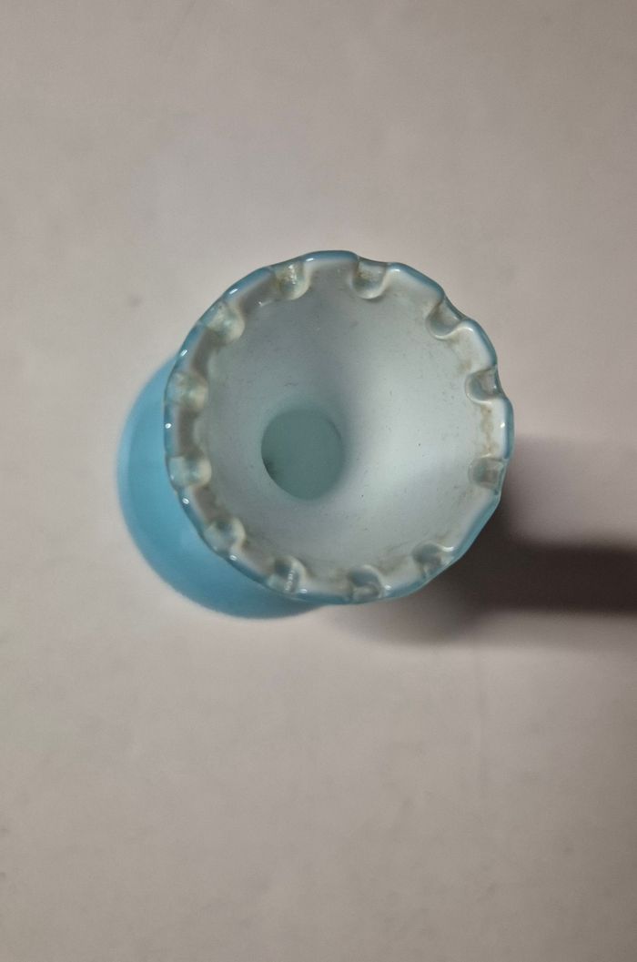 Vase ancien en opaline bleue  17 cm vintage soliflore - photo numéro 3