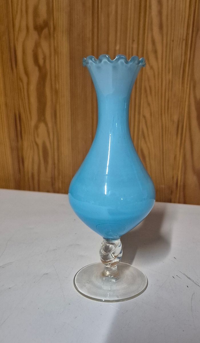 Vase ancien en opaline bleue  17 cm vintage soliflore - photo numéro 1