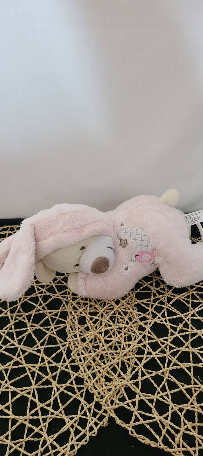 DOUDOU OURS ECRU ALLONGE ROSE DEGUISE LAPIN SNC OIA MUSICAL - photo numéro 1