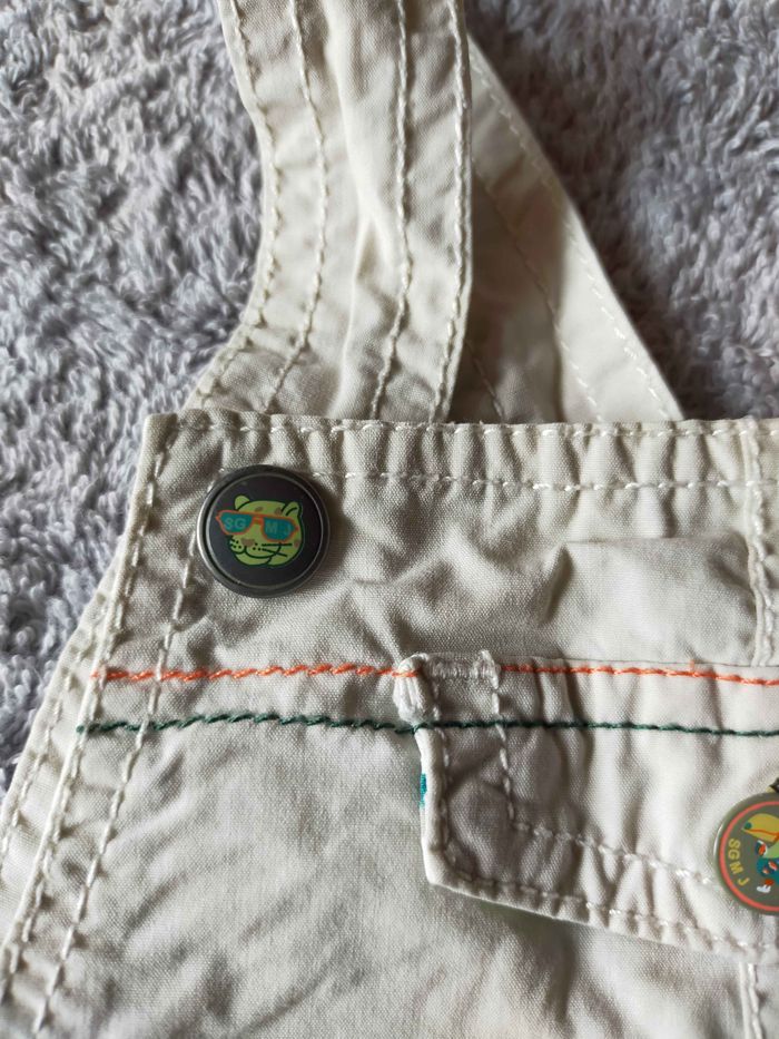 Salopette short bébé garçon 6 mois 67 cm 2 boutons pressions sur les bretelles 1 bouton pression sur les côtés Boutons pressions dans l entre jambes