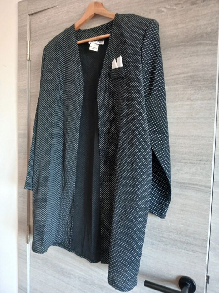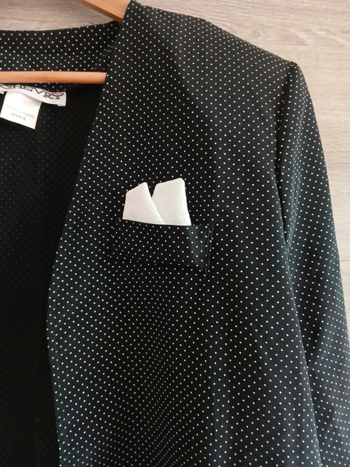 Surchemise noire à pois blanc Taille 46 Made in U.K 100% polyester Vintage