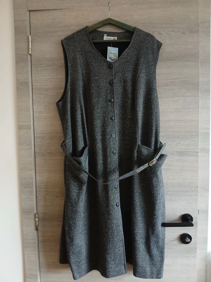 Robe gris chiné avec ceinture Taille 54 Vintage