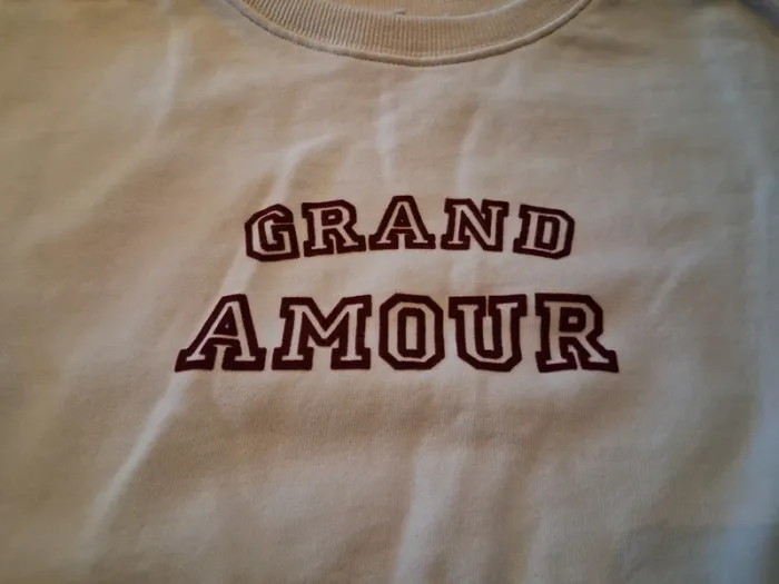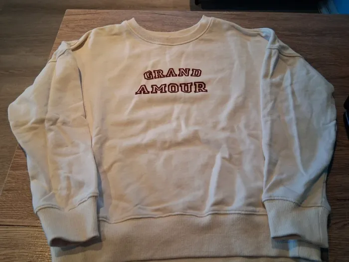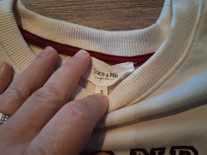 Bonjour, je vends ce sweat blanc écritures bordeaux de la marque Grace & Mila taille S en très bon état.