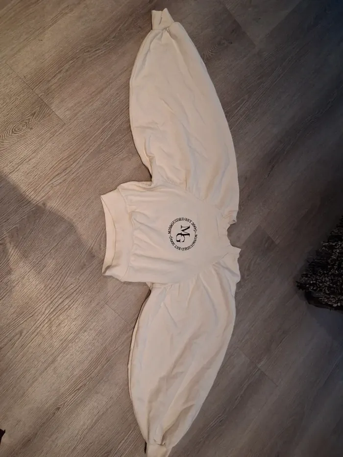 Bonjour, je vends ce sweat court crème manches chauve souris de la marque Missguided taille XS en très bon état.