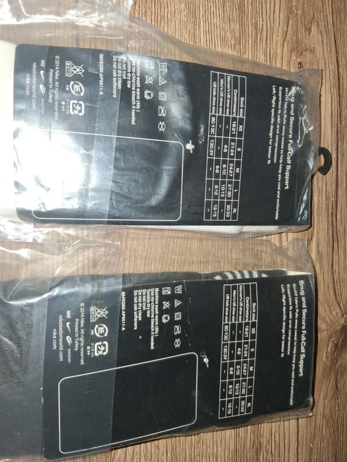 Bonjour, ce vends ce lot de 2 paires de chaussettes hautes noires et blanches de la marque nike taille S état neuf sans étiquette.