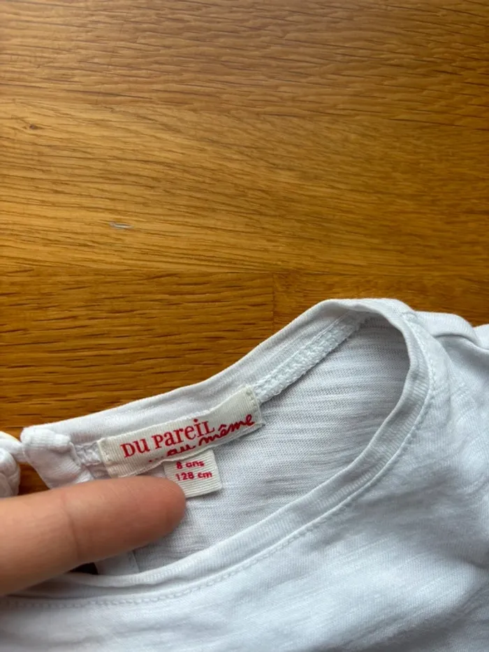 T-shirt MC blanc imprimé Du pareil au même 8 ans Bon état général Pour mon 8 ans fille, cliquez : #fiiipe_8ansfille #barboteuse #combinaison #grenouillere #pyjama #jogging #sarouel #legging #pantalon #vetements #lot #short #salopette #tunique #blouse #debardeur #tshirt #robe #jupe #bloomer #pull #coton #gaze #laine #velours #été #hiver #misaison #livres #livresbebe #jouets #educatif #transat #chapeau #casquette #lange #sweat #liberty #fleurs #mariniere #bodies #body #manchescourtes #mancheslongues #3moisgarcon #sergentmajor #dupareilaumeme #okaidi #obaibi #vertbaudet #zara #tapealoeil #cyrillus #jacadi #bonpoint #tartineetchocolat #bonton #franginfrangine #natalys #hm #kiabi #orchestra #primark #catimini #ikks #arseneetlespipilettes #ralphlauren #marese #dpam #jeanbourget #mango #monoprix #boutchou #petitbateau #petitprix #petitbeguin #lolapalacios #disney #8ansfille