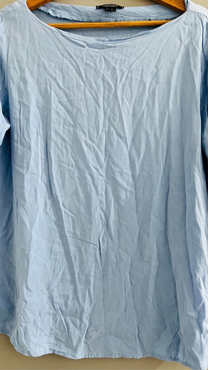 🌺Tee-shirt femme manches 3/4 léger 🌺Marque Esmara 🌺Taille 42 🌺Couleur bleu clair 🌺Bon état #modestyfrip🛍️ #teeshirtfemmme42 #teeshirtbleutaille42 #teeshirt femme #hautfemmexl #hautfemme