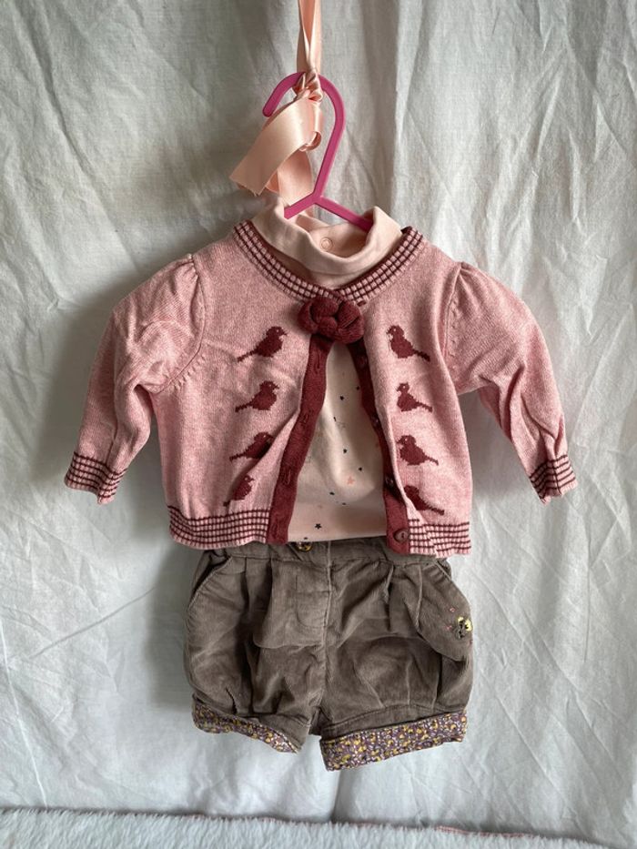 #3moisfillekmcreation L ensemble comprend : 1 gilet, 1 body et un short en velours
