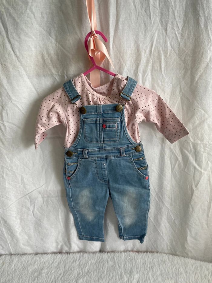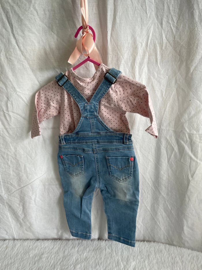#3moisfillekmcreation T-shirt manche longue grain de blé et salopette en jeans creeks