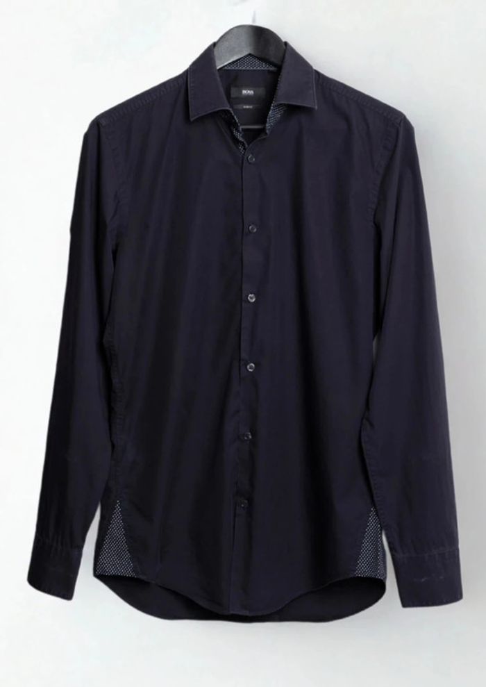 Chemise noire Hugo Boss – Détails à pois – Taille M