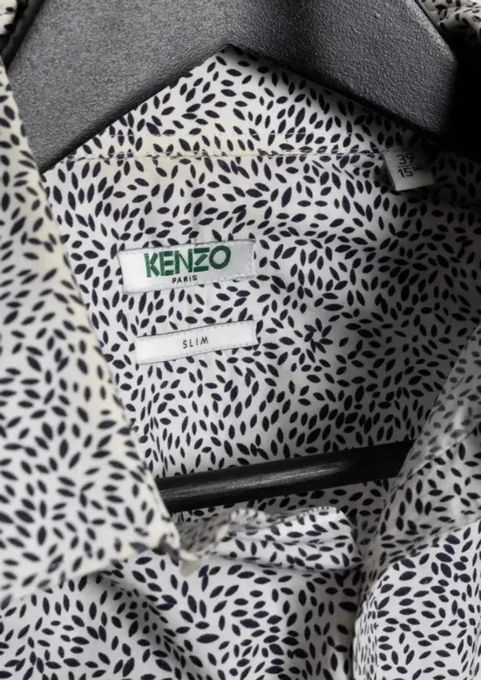 Chemise à manches longues à motifs blanc et noir signée Kenzo en taille 39 FR —> M 📏 Largeur épaules 43cm Largeur poitrine 52,5cm Longueur chemise 71,5cm Longueur manches 65cm #kenzo #kenzoparis #menswear #shirtmen #menshirt #chemisehomme #chemiseamotif #chemisenoiretblanche #chemisenoiretblanc #chemisemotifhomme #kenzohomme