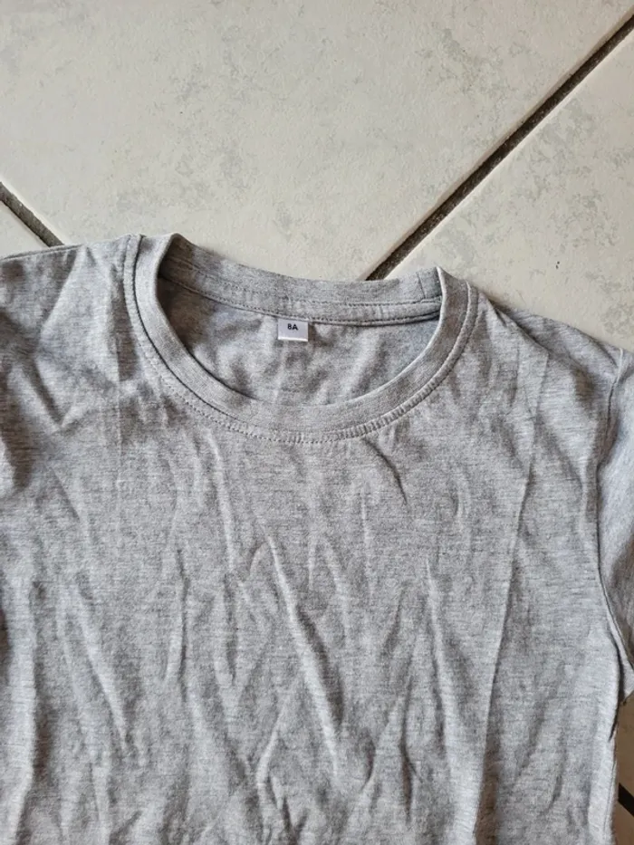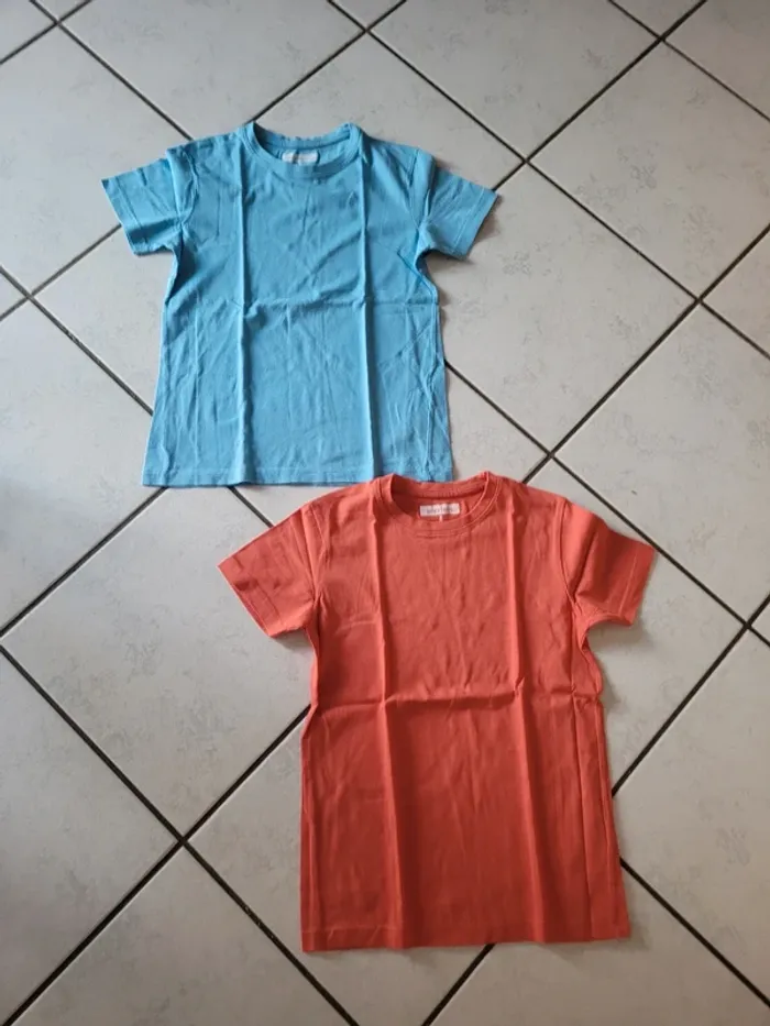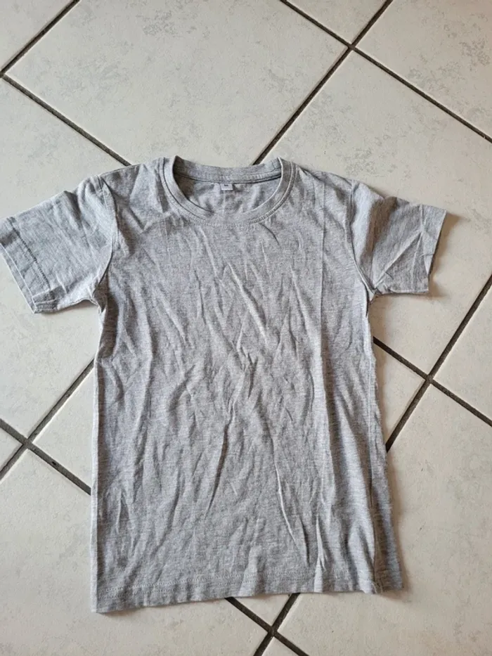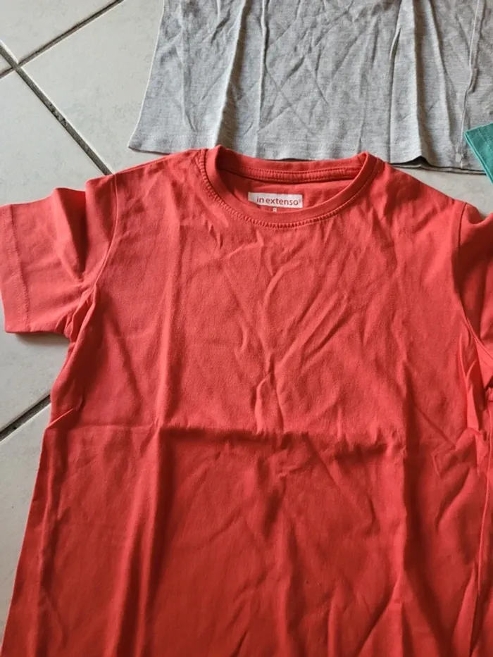 Taille 8 ans 1 bleu 100% coton 1 orange 100% coton 1 rouge 100% coton 1 gris 95% coton 5% viscose 1 vert 100% coton Et 1 gris sans marque 100% coton Le tout en excellent état