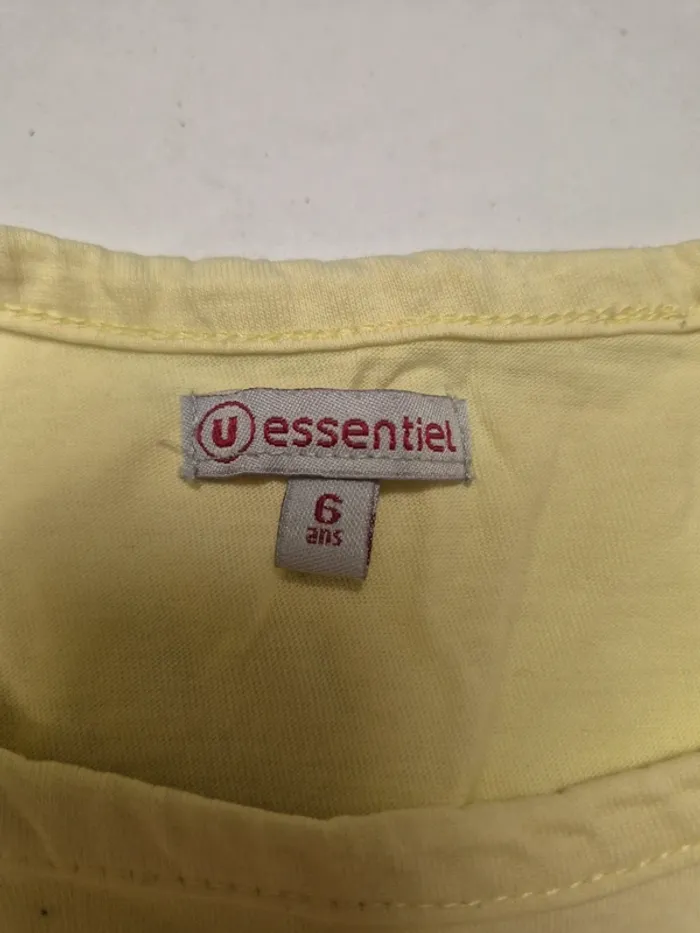 Débardeur marque u essentiel couleur jaune taille 6 ans ni trou ni tâche 🔆Cumuler vos achats pour profiter des réductions 🔆Envois rapide et soigné