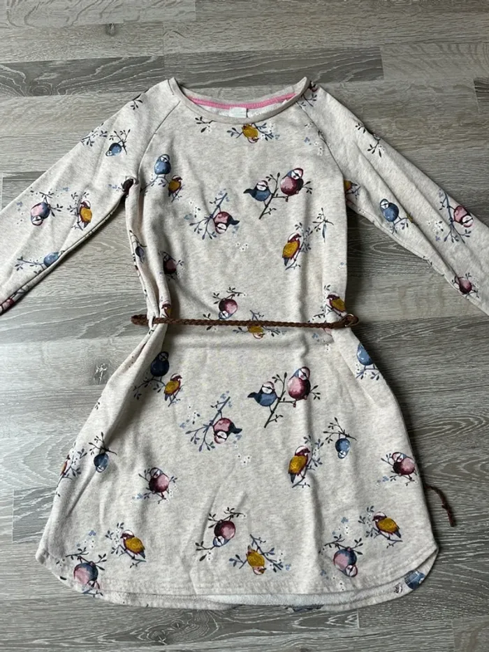 Peu portée Très bel imprimé et couleurs douces Passant pour ceinture sur le côté Peut être portée avec ou sans 8/10 ans Vendue avec la ceinture