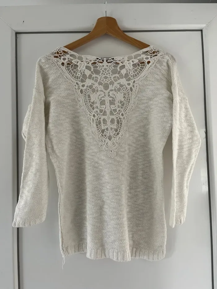 Pull blanc dentelle - photo numéro 1
