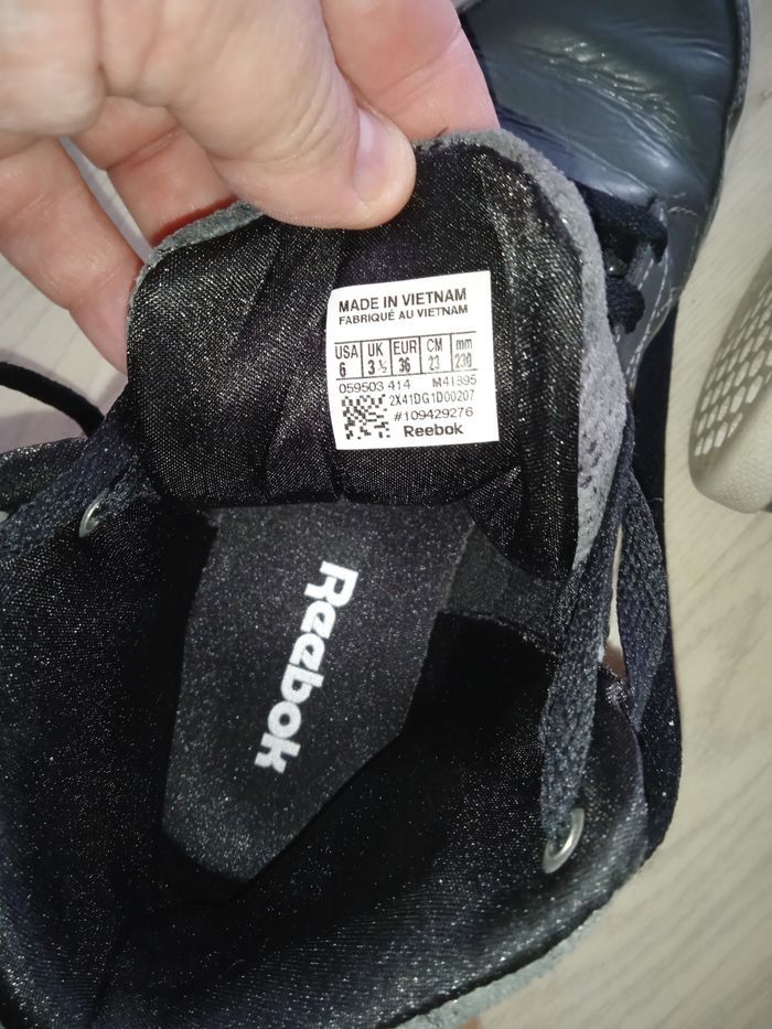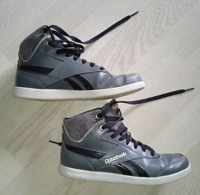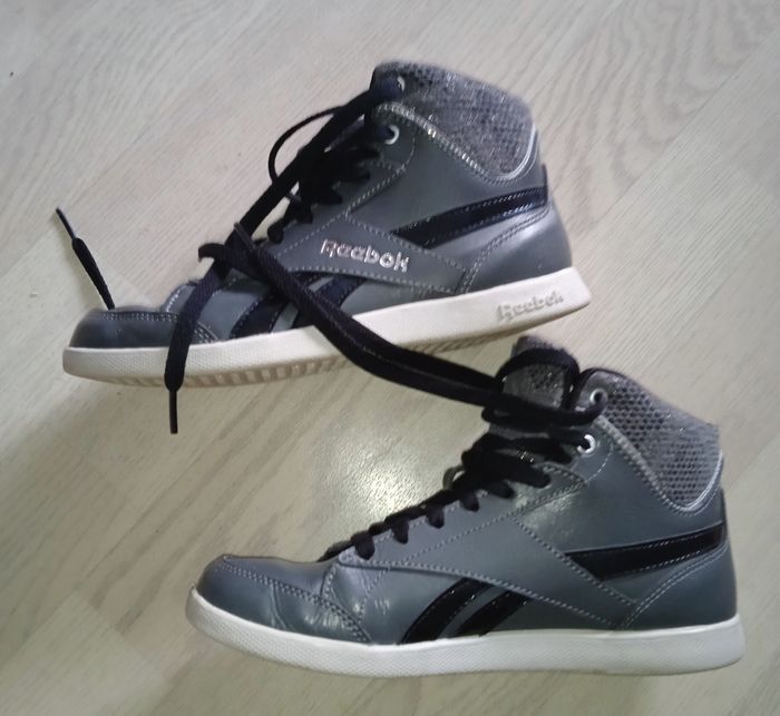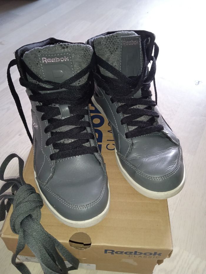 Baskets grises motifs serpent Avec double lacet gris et noir Dans son carton d'origine Marque : Reebok Modèle : Fabulista P. 36 Très bon état général, portées 1 fois