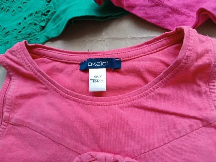 Lot 2 hauts 4 ans -Kiabi -Tissaia Très bon état +1 offert Okaïdi (petit trou=voir photo 9) #clairefvetementsfille4ans Tout doit disparaître ➕500 articles. Pas de vêtements tachés ou troués à vendre, seulement besoin de place. N'hésitez pas à me demander des 📷 photos. 👧naissance => 4 ans 👦naissance => 18 mois 📦Envoi rapide et soigné
