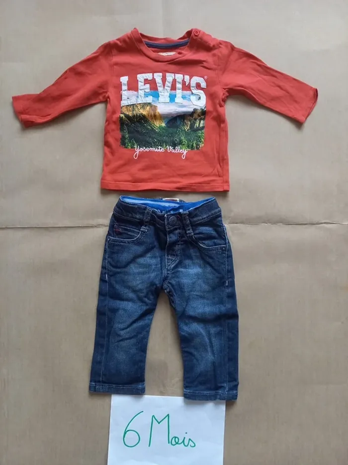 Ensemble 3 mois Levi's -T-shirt (manches longues) -Jeans (taille réglable) Très bon état #clairefvetementsgarçon6mois