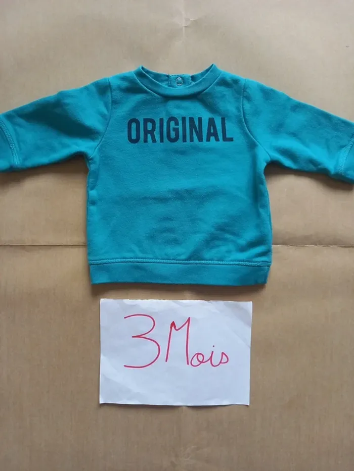 Sweat (3 pressions au dos) 3 mois Orchestra Bon état (légères bouloches=voir photos) #clairefvetementsgarçon3mois